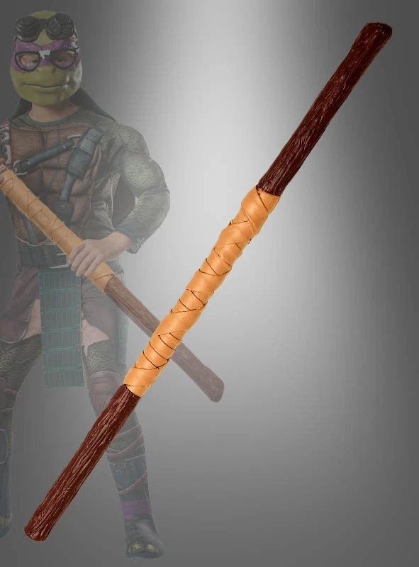 Der braune Bo-Stab des Turtles Donatello ist sowohl für Kinder ab 8 Jahren als auch für Erwachsene als Kostümzubehör geeignet. Er ist braun und im Bereich, in dem man den Stab hält, beige.