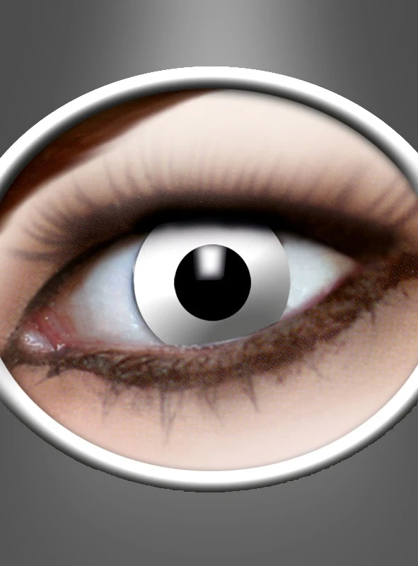 Farbige weiche Kontaktlinsen in weiß für untote Zombiekostüme. Das Highlight für Ihre Verkleidung. Einfach der Wahnsinn an Halloween oder beim Zombiewalk. Garantiert ein Hingucker! Heben Sie sich ab von der breiten Zombiemasse und vervollständigen Sie das Halloweenkostüm mit diesen Motivlinsen. Garantiert ein Schocker!