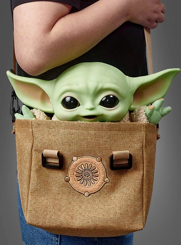Das perfekte Cosplay Accessoire für ein Mandalorianer Kostüm ist diese elektronische Figur „Das Kind“ in der Tasche. So wird Grogu, das Baby in der 2. Staffel der TV-Serie transportiert. Die Umhängetasche hat einen langen Schultergurt, der verstellbar ist. Sie ist stabil und gut verarbeitet.