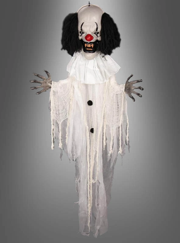 Ein sprechender Höllen Clown, der auch noch seinen Unterkiefer bewegt und unheilvoll mit den Augen leuchtet ist auf jeden Fall sehr gruselig. Hoffentlich nehmen Ihre Gäste vor dieser Halloween Deko nicht Reißaus!